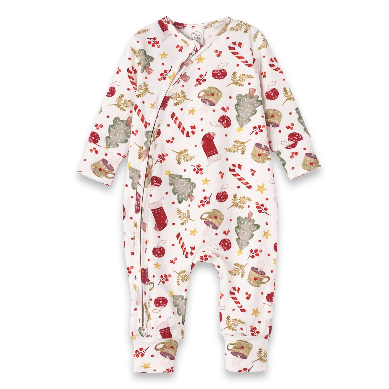 Bamboo Holiday Baby Zip Romper – Christmas One-Piece Pajamas - Noel