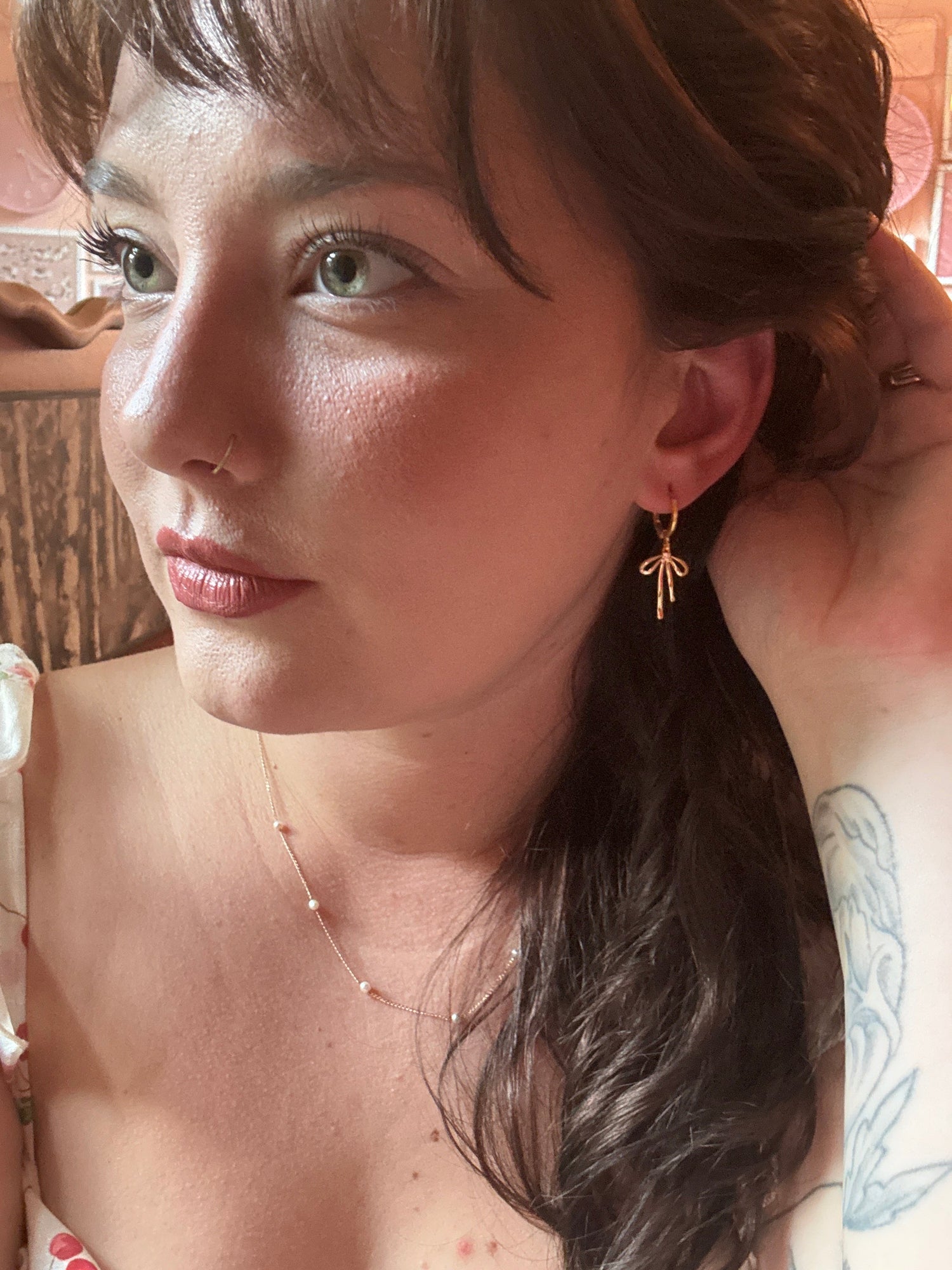 Delicate, charming, and effortlessly elegant — our faux gold-filled bow earrings bring timeless femininity to any look. Crafted with a high-shine finish that mimics real gold, these lightweight beauties offer all the luxe without the cost. Perfect for everyday wear or a subtle statement at special occasions, their dainty bow design adds just the right touch of sweetness and sophistication.