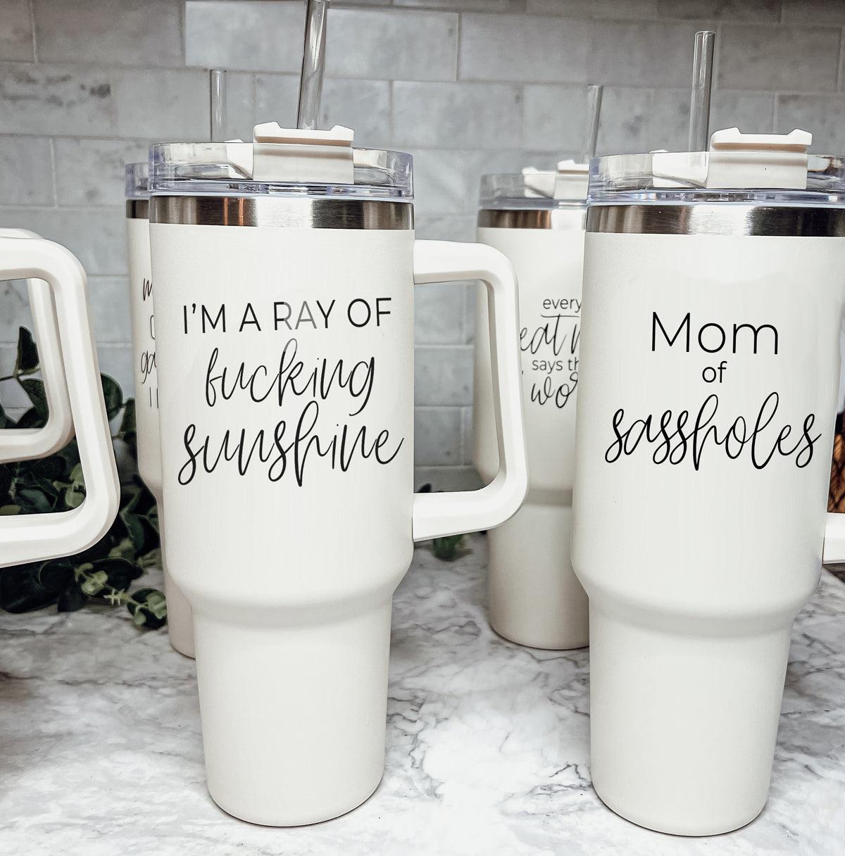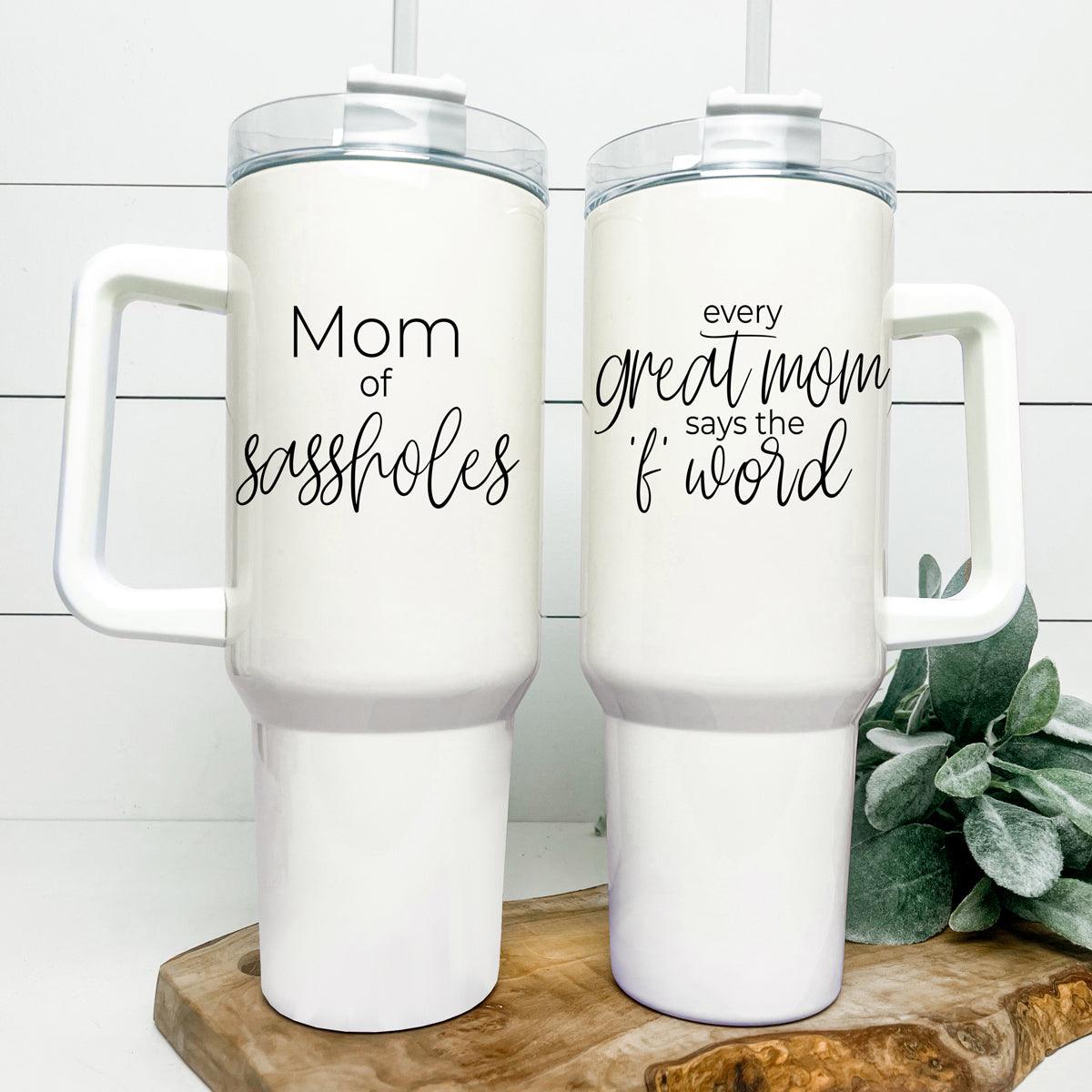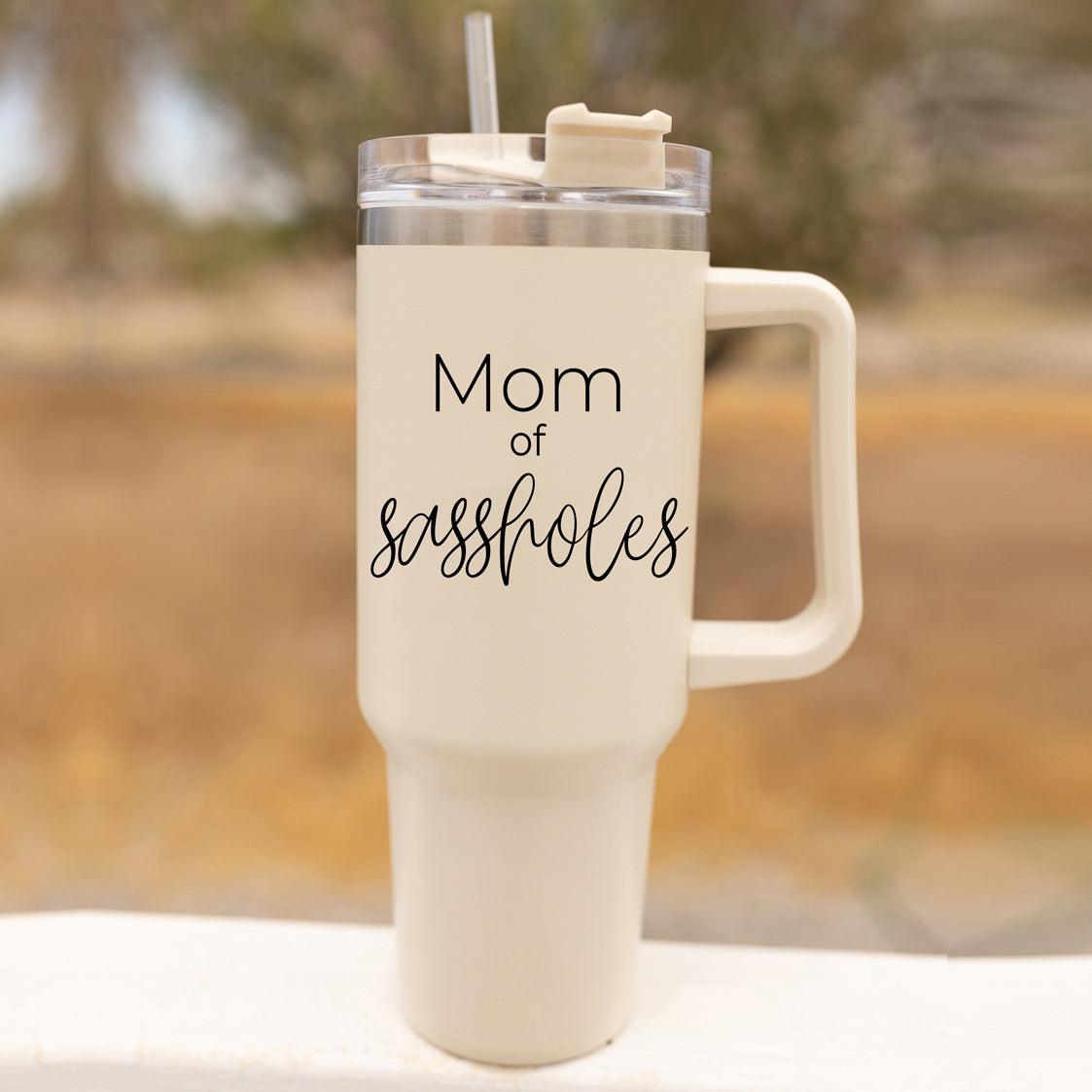 Mom of Sassholes Insulated Mug with handle, lid and straw